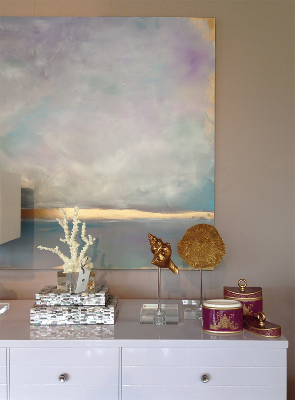 If you love art you are in for a real treat today as I'm highlighting the work of super talented abstract artist Julia Contacessi. Her works are serene, beautiful and ethereal. I have so many great photos of her work it was difficult to chose which ones to highlight for the post. Honestly, I don't think I could go wrong. Her works are not only beautiful in themselves but, as you will see, really make a space standout. And did I mention she is giving away one of her prints to one lucky Mimosa Lane reader?!! Who is feeling lucky, lucky? Let me tell you a bit more about her-