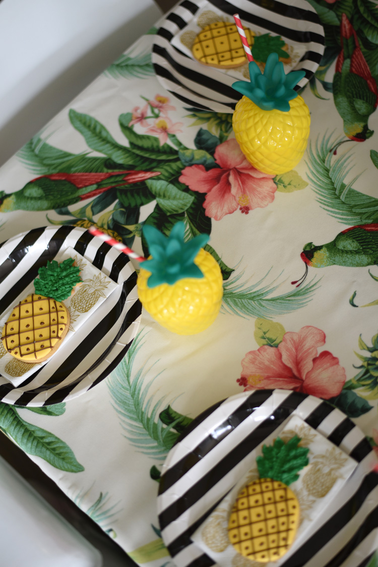 We celebrated Little Miss A's birthday this week with this tropical pineapple theme. It was a simple but sweet affair. We dressed up the kitchen table with a homemade tablecloth, added some greenery a beautiful cake and cookies and the perfect party supplies to bring the party to life. See more-