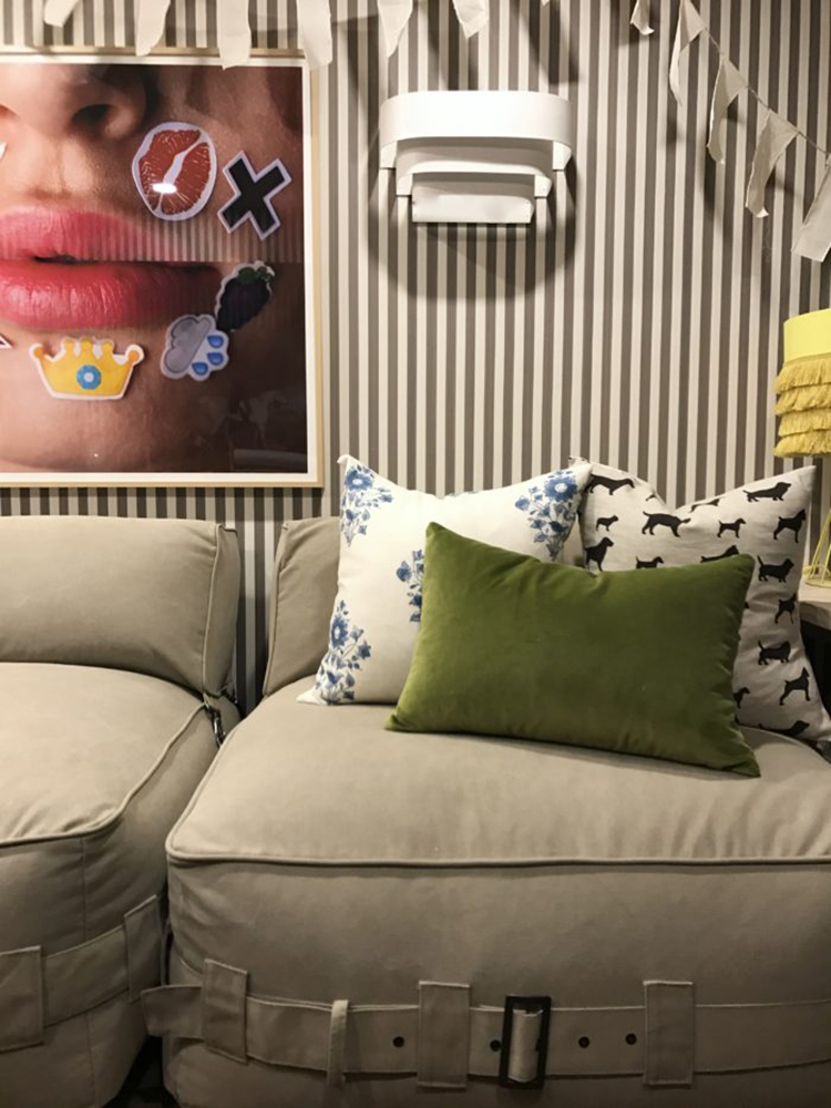 Of course another favorite is Christine Dovey's basement remodel. Her art, lighting, fabric and furniture choices are exciting and unexpected. This is what I love about her. She always surprises us. And of course the facts that she used my photograph was very humbling and exciting.